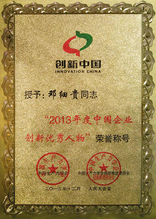 贺喜我司邓细贵董事长获得“2013年度中国企业创新优秀人物”荣誉称号