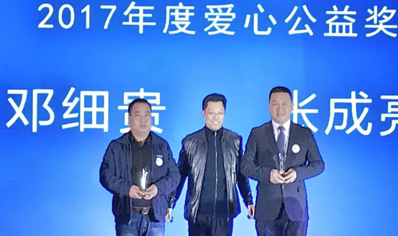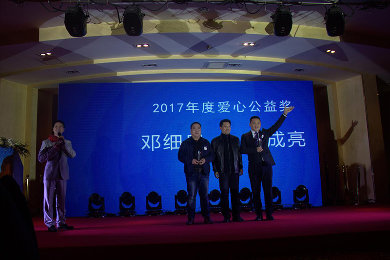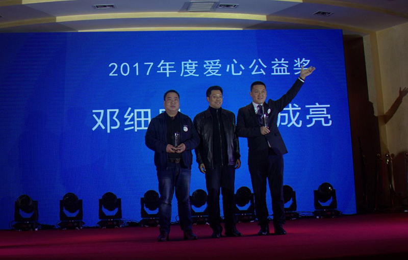 恭喜上海腾灵冷暖设备工程有限公司总经理邓细贵先生荣获2017年度郴州人在上海爱心公益奖,由现任湖南省郴州市人民政府副市长贺遵庆授予此称号并颁发奖杯。