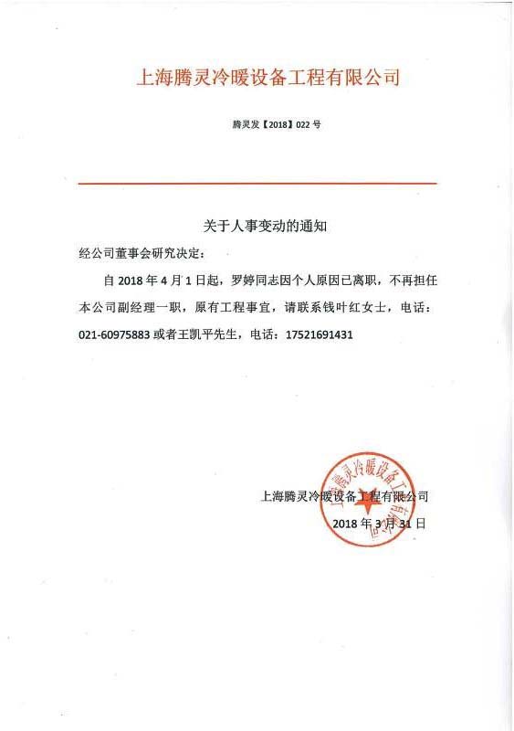 人事变动通知